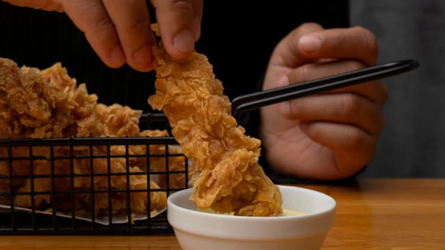 - 12 pedaços de peito de frango panado, crocante, servidos com um delicioso molho sweet chili.