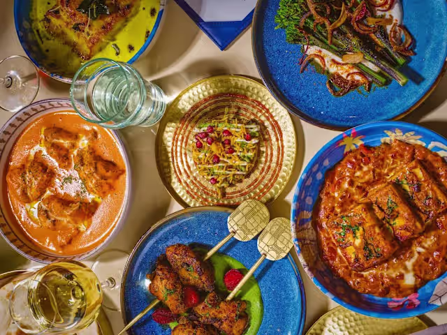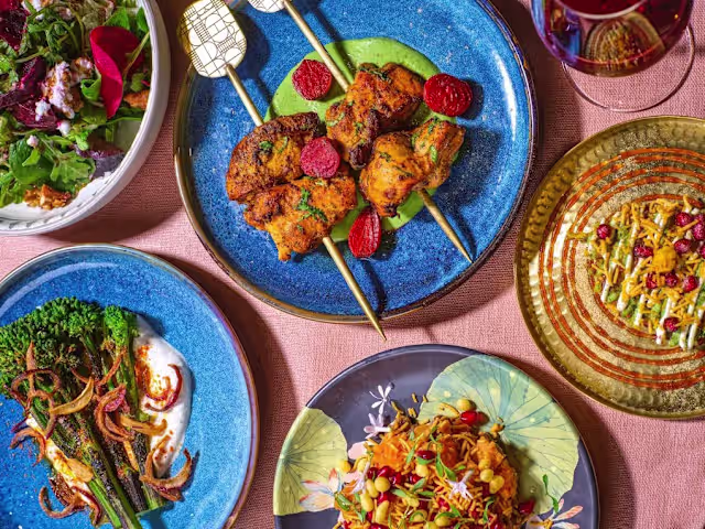 - Sphères de blé croustillantes | pommes de terre acidulées | chutney de tamarin | yaourt épicé