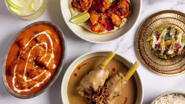 - Poulet désossé | épices parfumées | riz basmati au safran | raita à la grenade