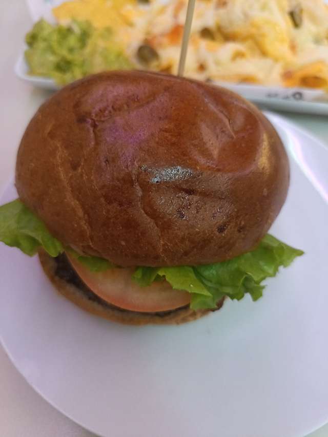 Nuestra hamburguesa se lo monta a lo dásico con lechuga, tomate, cebola roja y pepinilo.