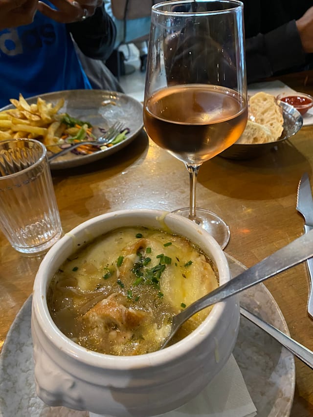 10/10We had the French onion soup, pasta and freshly squeezed orange juice. Everything was exceptional! We didn’t want meat in our pasta so they exchanged it with fried cheese and it was so good! The cheesy soup was the best!