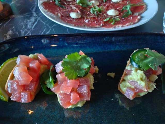 8.5/10Love the ambience… rocking on a Friday night in a classy way. We ordered scallops, the tuna tacos ( superb) and a desert washed down by a Crozes Hermitage. Small portions and expensive but delicious. I would go back.
