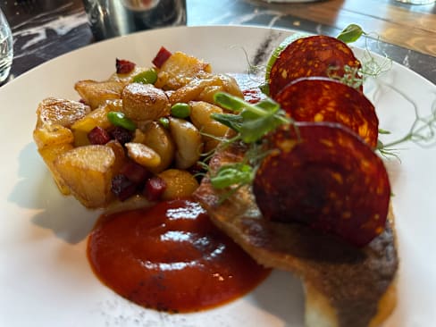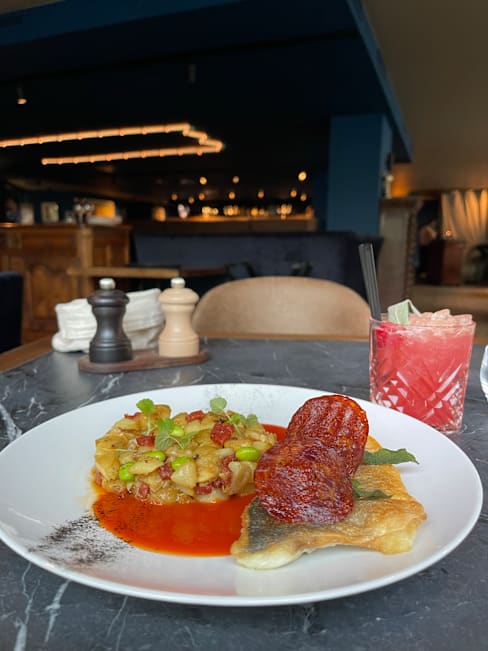 8.5/10Love the ambience… rocking on a Friday night in a classy way. We ordered scallops, the tuna tacos ( superb) and a desert washed down by a Crozes Hermitage. Small portions and expensive but delicious. I would go back.
