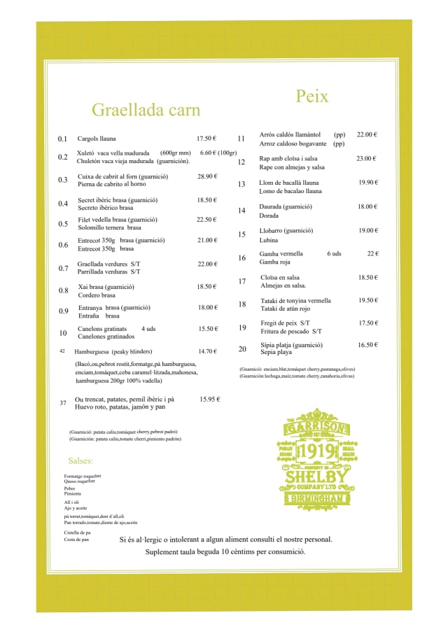 Menú del dia€13.9 per guest