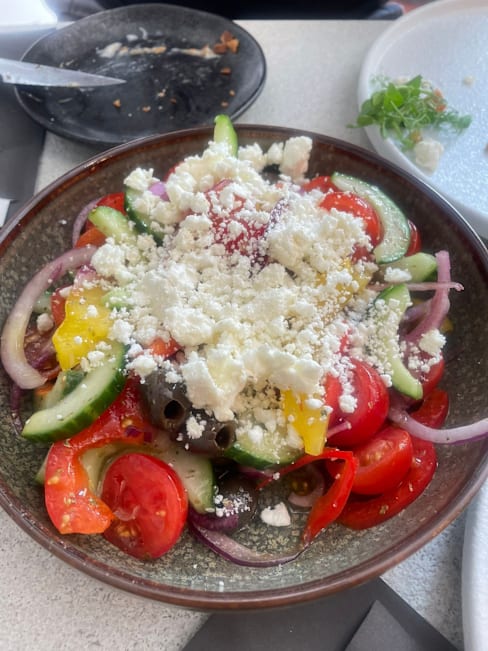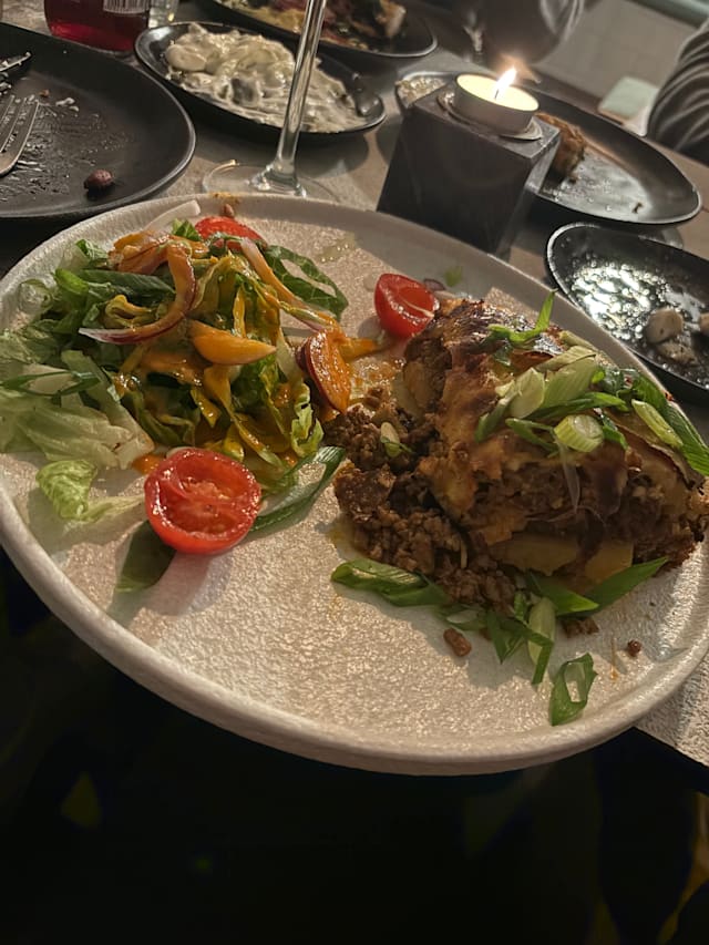 6/10Reserved a table however there was no table and had to sit on high stools by the window shelf/table. Salad, chips and chicken were great. The zucchini fritters didn't taste that authentic and the moussaka was way too salty, I like salty food but this was too much. Service was fine, the staff were polite and friendly. I was not blown away by the food, I expected it to be much better.