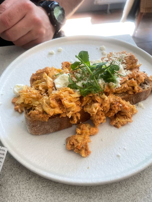 3.5/10Very disappointing experience today. We sat down and no one greeted us, so we looked at the menu from the QR code. When we waved someone over to order, they told us that only the "brunch" part of the menu was active (only about 6 dishes). They left us and went to sit and eat their own lunch just metres away from us, both servers were eating at the same time and I had to go and ask them again if we could order. The food was ok but If I knew it was only the "brunch" menu (at 13:00) I wouldn't have gone there. Overall the rude service was the biggest disappointment.