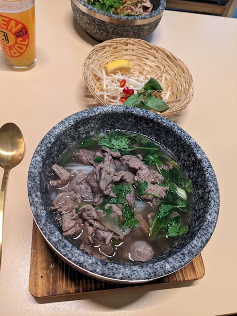 8/10In my opinion, this is one of the go-to places for an authentic bowl of Phở. Clear and pretty flavorful broth, squeeze in some lemon and it tastes even better. We also ordered noodle salad and it was really good too. The place is quite cozy and clean :)