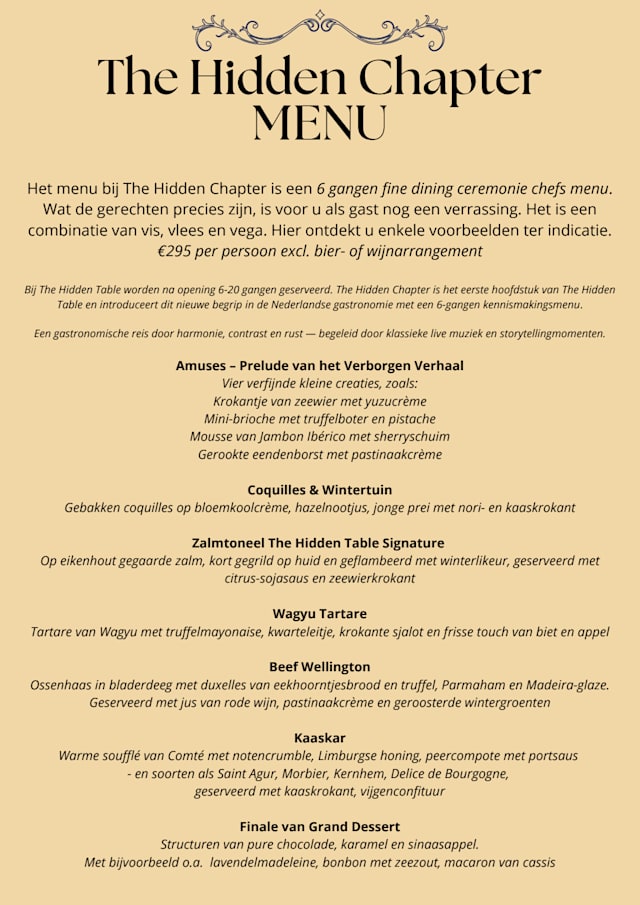 6 Gangen fine dining ceremonie chefs menu€295 per guest