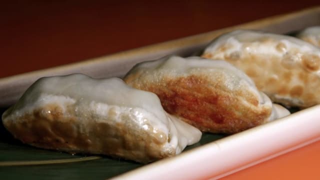 Gyoza al vapore e piastrati a sceltra tra maiale, verza e cipollotto o cavolo, erba cipollina, carote e funghi 4pz