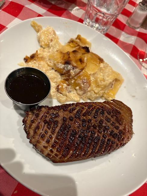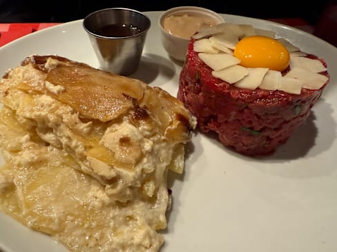 5.5/10Lovely waitress who is as attentive and knowledgable. Sadly the meat quality was not what I’d expect. It was poor to be honest for the price paid. Whilst I know French cuisine is significantly different to UK and I am accepting of that, the quality of the meat shouldn’t, surely