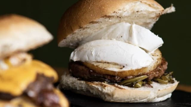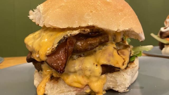 Double hamburger, double cheddar, double bacon, crispy sauce and salad