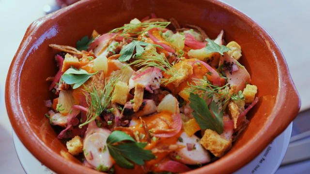 Octopus Salad Tomato and Peppers Purée with Citrus