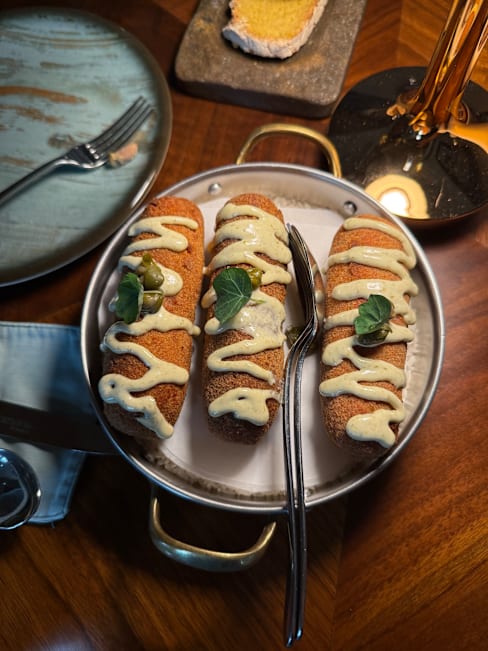 9/10Beautiful interior. The oxtail croquettes were amazing. We also got the codfish, pork cheeks, and beef tenderloin. The entrees were solid.