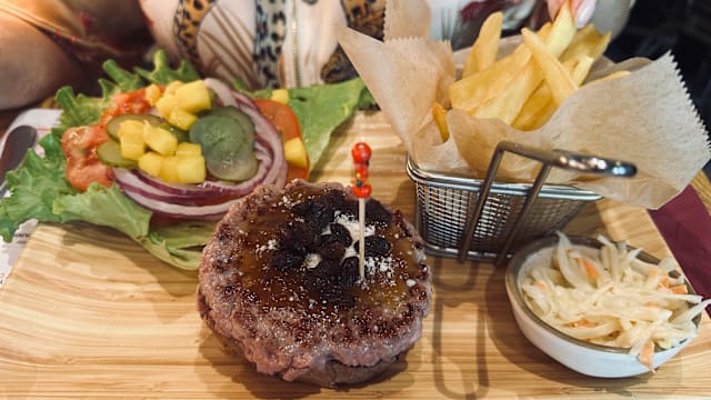 8/10The food was okey, my burger meat was a little bit cold , but the bead and side dishes were good, 7/10