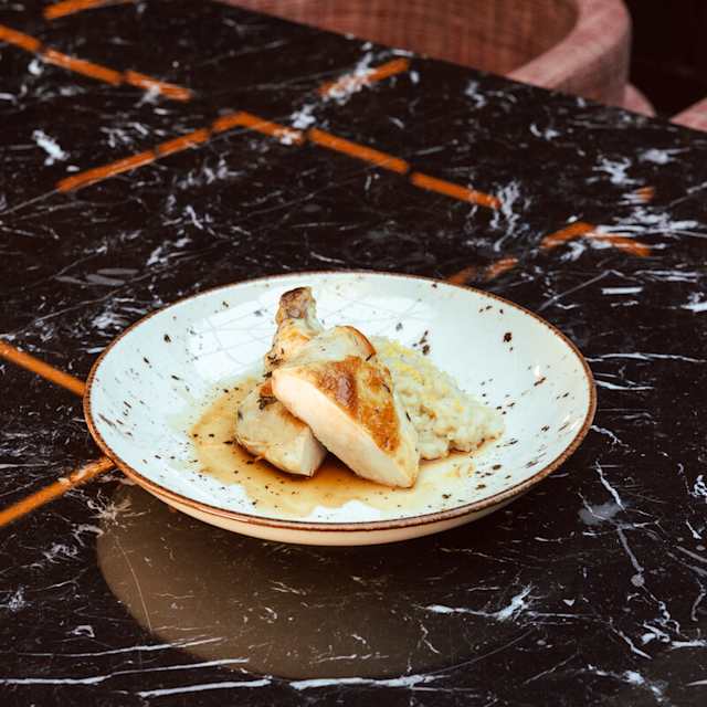 - Perna de frango recheada, fregola de tomate, maionese de limão