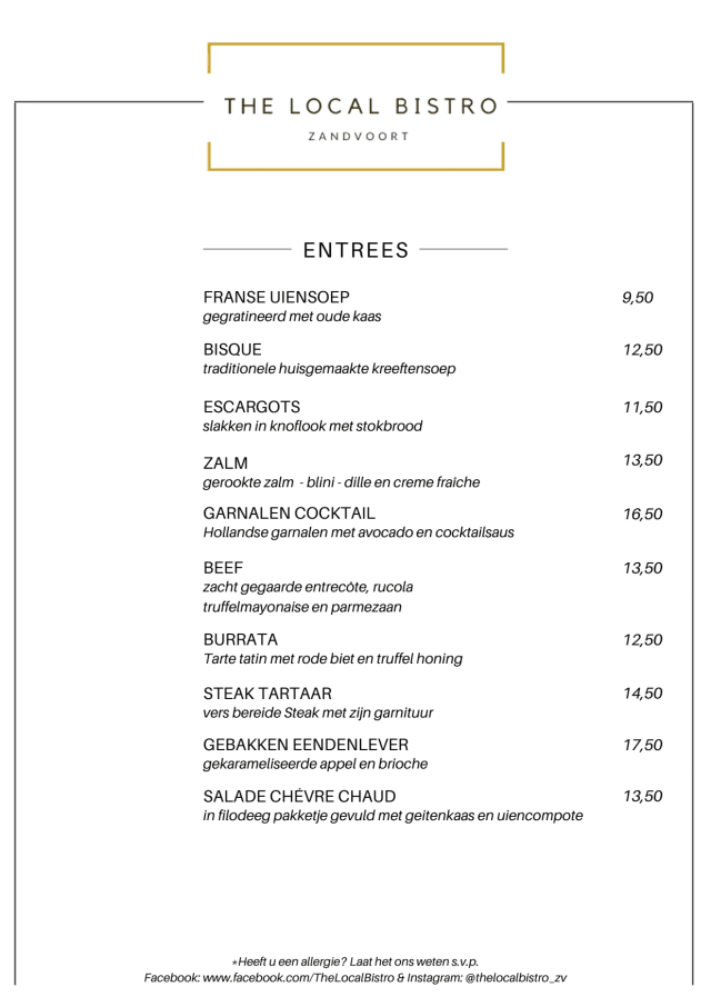 10/10We really enjoyed our dinner at the local bistro. Food, Service and location was really nice and cozy. The price was very reasonable for the quality of the food. The fish and pasta were excellent. One of the best spots to eat in Zandvoort.