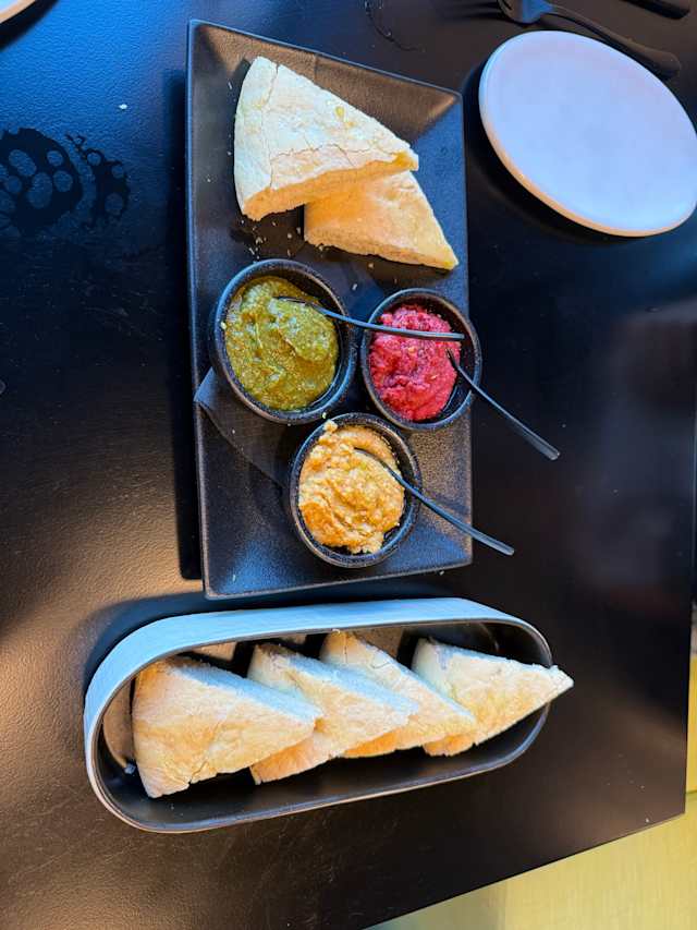 There was no vegan first or second course listed; strange for a place marketed as healthy and modern etc. Anyway we chose a share option of 3 types of hummus (very small portions with just 2 small pieces of bread) and a couple of starters. We knew the prices were a little high but we had a 30% discount with The Fork so it seemed like a good opportunity to try out the place. We also had 2 glasses of Prosecco each. The bill, (after the discount!) was €102. Forty eight euro of this was for the drinks. Twelve euro for a glass of Prosecco is excessive, even for Milan! The food was average with very small portions. The place is very elegant and modern, but definitely over-priced. Shame because it seemed an interesting concept.