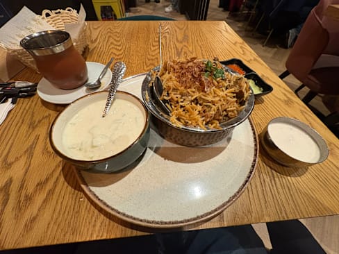 10/10One of the best Indian restaurant (outside India) that I have done in my entire life (and I had quite a few … 👀) The Indian Chai was perfect. I like it with a lot of sugar but still great. The lamb biriyani was great (taste and smell). Personally, I prefer a lot more spicy because I am used to it but for European taste, it is perfect. The hot Gulab Jamun with some ice cream is a superb idea. The mix is just amazing. No mistake, I strongly recommend !