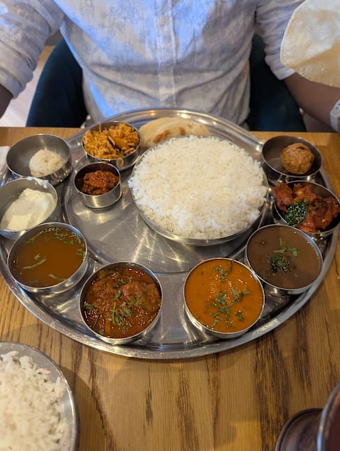 7/10Service was attentive and good. Nice dining atmosphere. Suggest to have a hand wash area as entering a wc to wash your hands and seeing a toilet is not appetising before a meal. We were very disappointed with the food. We went with the expectation of the good reviews and to have a nice south indian meal. The fish curry and sambar was sweet!!! We did ask for spicy but it was sweet. Very disappointing. We will not go here again.
