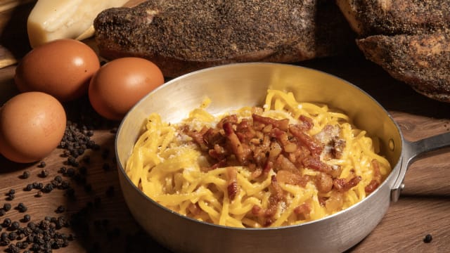 Uovo, guanciale, pecorino romano dop e pepe