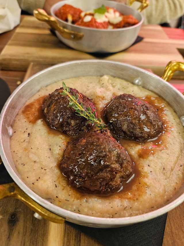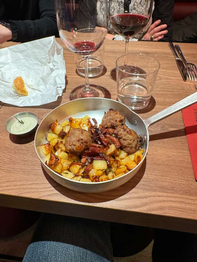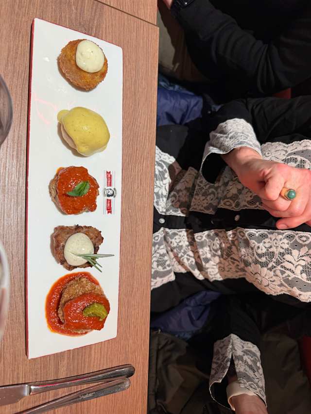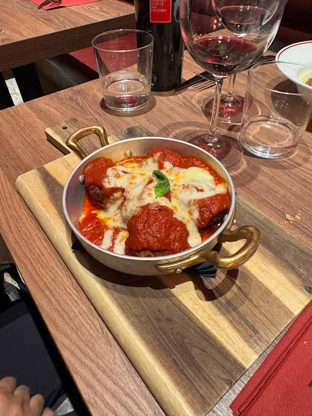 10/10I found this restaurant so quickly after we came tired from Monza Grand Prix and did not had high expectations at all. But it was completely opposite - it was right what we needed. As it was Sunday, it was not much crowded which was perfect after a long day with dozen of people. Ambient was really nice and modern which was also refreshment after days in Sicily. We had meatballs appetizer to share and each meatball was so good served with tomato sauce and perfect bread (so fresh and crispy). After that we ordered risotto Milanese with ossobuco meatballs that were practically melting in our mouth. Rice was just a bit dry but we did not mind as all together was of amazing taste. And ofcourse, famous spaghetti with meatballs which was also really good and portion was more than enough. We had bottle of Chardonnay with it and complementary foccacia from the house which was soooo warm, fresh and had this amazing scent of olive oil. Tiramisu for dessert and we were on our way. Perfect dinner!