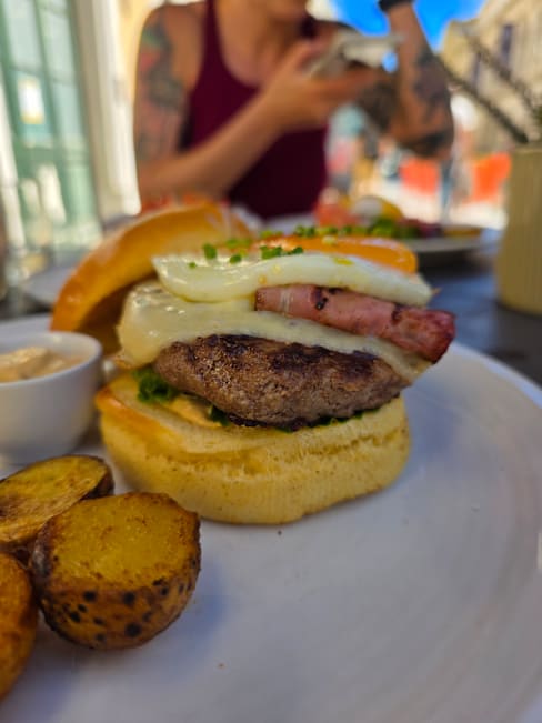 5/10I’d had some good meals here but they changed the menu & got rid of one of my favorite dishes (pork chops) So I ordered the hamburger which is never my first choice but nothing else looked interesting. I was very clear when ordering thst I like it rare and mentioned it should still be pink inside. The menu also said it comes with salad. When it arrived it was far from rare, and a very thin piece of meat. There was no salad at all. I was there using the Fork offer but would not have been worth the normal price of €14. There is also no AC and they have no fans which means in a hot day, it’s uncomfortably hot inside & the patio is mostly in sun. Restaurants like this need to decide who their food is for and do it better. There are a million restaurants downtown, if you want repeat customers, you have to be worth going back for. On the plus side, service was friendly though not a lot of English.