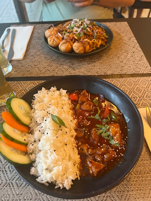 10/10loved the sweet and sour tofu today. fried and vapor momos. thank you