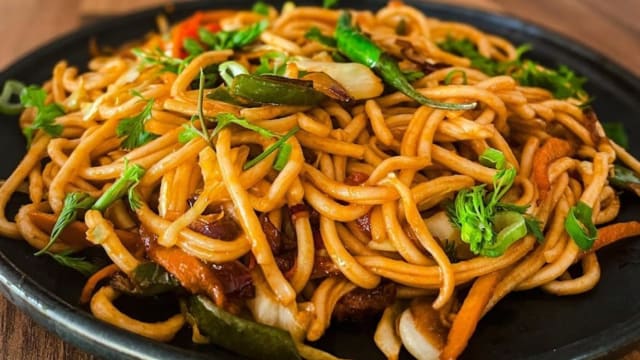 Chowmein + 4 fried mo:mo (fritos) - veggie