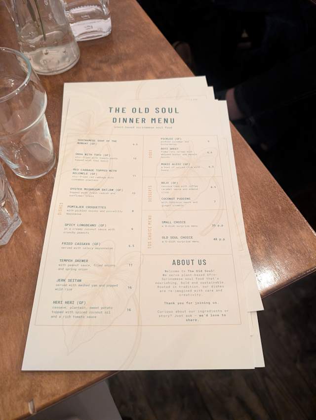 10/10As a Dutch person I think I know Surinam food, but in the old Soul we had a very new experience. No meat- but we did not miss it a bit, and all ingredients were so fresh, and the food was prepared and served with so much love. This is why I recommend the Olfd Soul to everybody