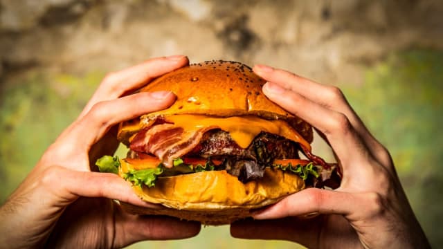 Disfruta de dos irresistibles smash de Ternera Gallega acompañadas de una generosa doble ración de bacon y queso cheddar derretido en su punto. La experiencia se completa con nuestra exclusiva SmokeyMayo de bacon, con un picadillo de pepinillos agridulces. ¡Ni tan mal!