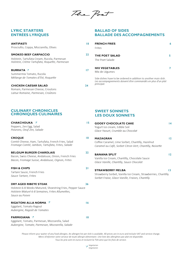 10/10An amazing experience! We had dinner at "The Poet" restaurant last week and it was truly a special evening. The warm welcome, the sublime aesthetics of the venue and the kindness of the staff proved to be comforting and enveloping elements, guaranteeing a sense of pleasantness and relax. The menu and cuisine are also excellent. Particular note of prestige goes to the Maitre Emmanuel: a helpful, kind and friendly professional. The perfection of formalities did not prevent him from being present, pleasant and from accompanying us on a human level throughout the evening. A big thank you to Emmanuel and the restaurant "The Poet" which I recommend for a special evening!