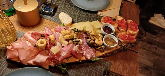 Un tagliere con salumi e formaggi selezionati, con aggiunta di frutta fresca e verdure grigliate. Il tutto accompagnato con delle nostra confetture fatte in casa e preparate in base alla stagionalità dei prodotti. (per 2 persone)