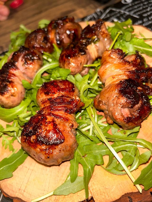 Bombette, salsiccia piccante, capocollo e salsiccia.