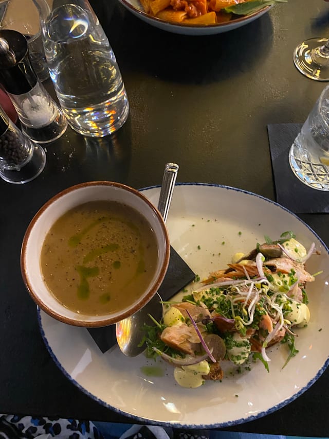 8/10Good very good, nice relaxed atmosphere, no child portions/ kids meals. Could take home if not finished.
