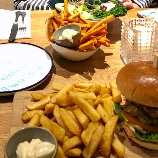10/10Nice restaurant with good service and big portion of food, the vegetarian selections are plenty, beef burger could be a tad better though but overall it’s a nice meal for us and we enjoyed it.