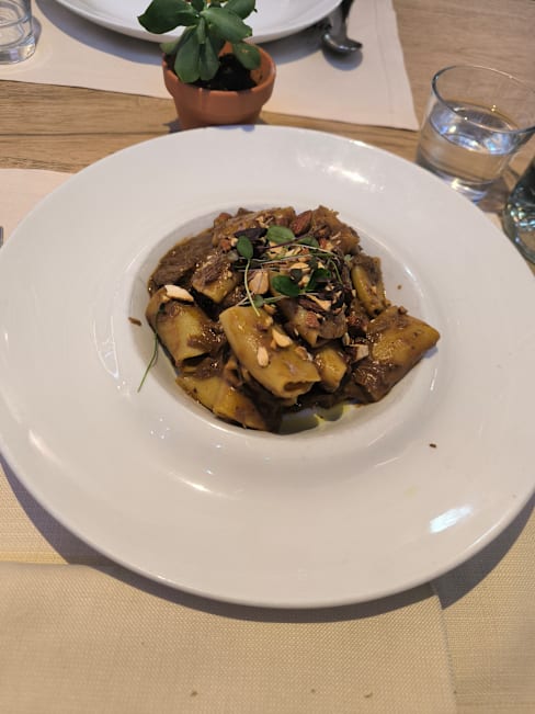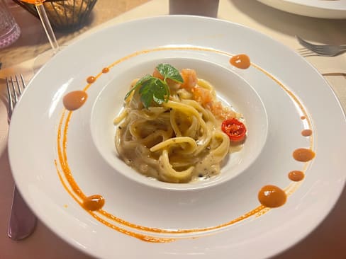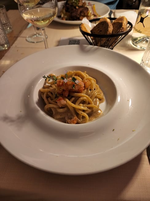 10/10Not an ordinary Tuscan restaurant. More creative refined riffs on Tuscan food, welcoming staff, lovely execution of their ideas. You can order pappardelle al cinghiale almost any where, but linguini al ricci di mare e aglio nero here. We enjoyed it a lot! Thank you!