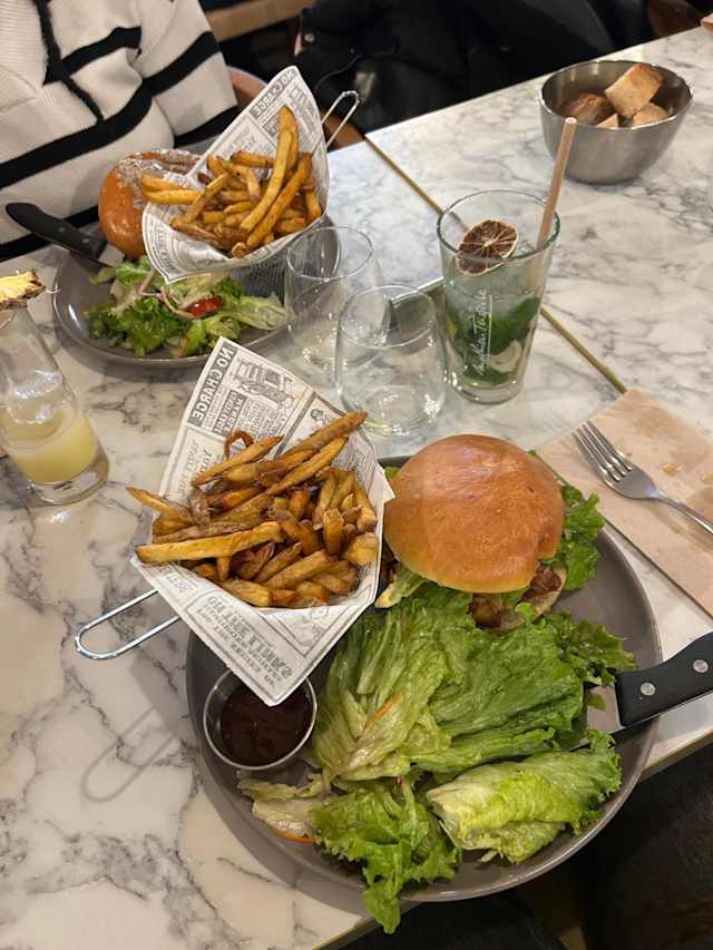 - Une belle pièce de viande savoureuse et française cuite à la perfection, pour les amateurs. Servi avec frites maison et salades