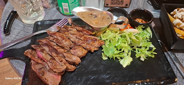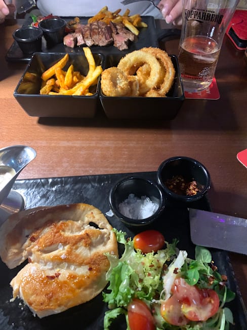 10/10The flat iron steak was absolutely delicious! Cooked to perfection, juicy and tender. Service was so attentive, the Irish guy who served us said it was only his third day but he looked after us well. One of the girls even phoned us a taxi and stayed until it arrived. Live music from black hole was amazing as when we visited in January, fabulous place!