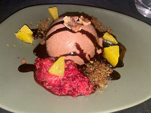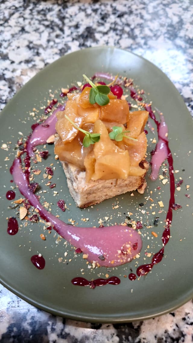 De potiron, égrené végétal crème de parmesan, brisure dé châtaignes et champignons persillées