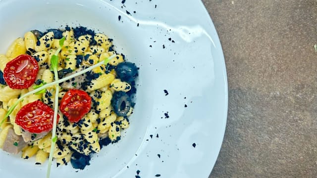 Gnocchi al pesto con patate, fagiolini e pomodoro secco