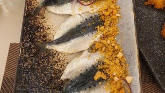 Calamari fritti, frittura di paranza, verdure in pastella, polpette di manzo fritte, culurgiones con ripieno di patate e menta, crocchette di baccalà, focaccia al rosmarino, chips fresche e maionese al lime