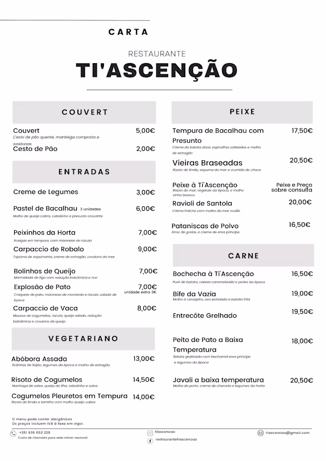 Delicious food, prepared with love. The staff are welcoming and friendly, the food is excellent - traditional Portuguese dishes with a modern twist.