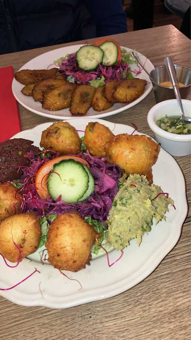 - Guacamole d'avocat, farine de manioc et morue émiettée, agrémenté de condiments exotiques