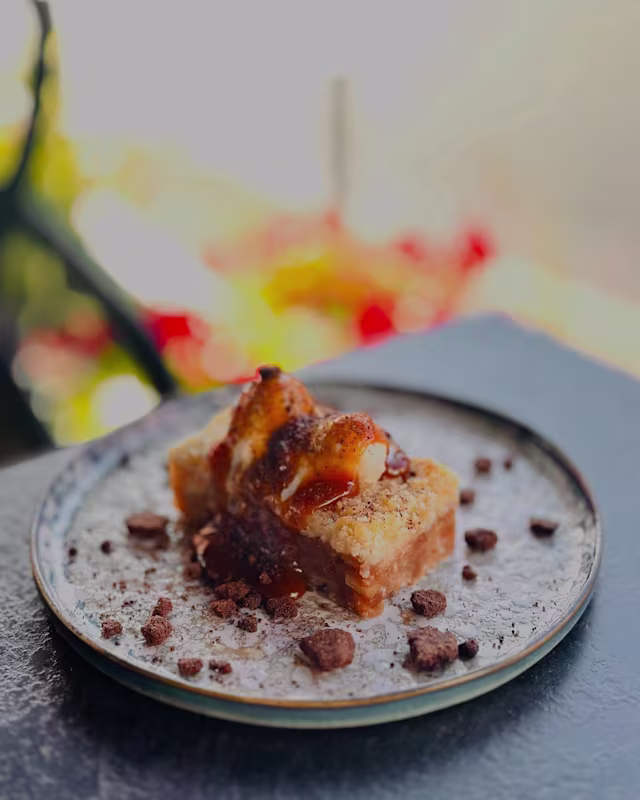 - Chocolate do Dubai – Chocolate rico e cremoso com recheio de pistácio e massa kataifi crocante, preparado na casa. Inspirado nos sabores do Médio Oriente, combina suavidade e crocância numa experiência indulgente.
