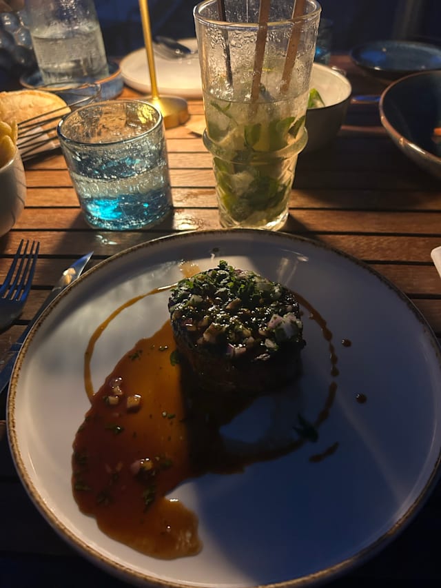8/10Lovely ambience and location with seating on the seafront. Service was a little slow and had to keep asking for another drink but otherwise really lovely. Food is mediocre; a little expensive for the quality but location made up for it.