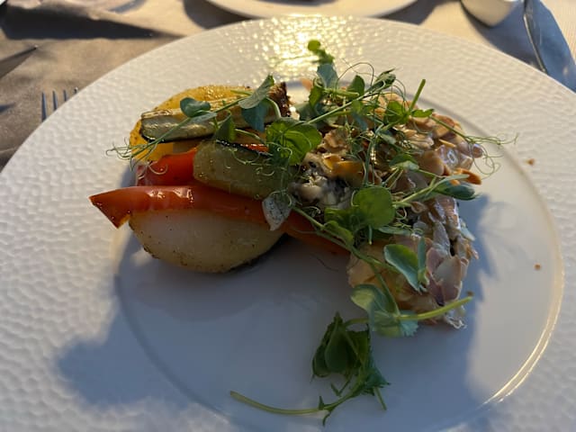 10/10Everything about our visit was absolutely magical. As soon as we arrived, the staff went out of their way to move umbrellas and rearrange things so we could sit comfortably in the shade – even though our table was right down by the water. They truly did everything to make us feel at ease. We were served lovely wine and plenty of fresh bread, which they kept refilling throughout the evening. The service was exceptional: they timed the meal with great thoughtfulness, serving just a light starter while the sun was still strong, and waiting with the main course until the sun had set – which made a huge difference and showed real care. The desserts were absolutely wonderful, the drinks were delicious, and the staff was simply amazing – attentive and friendly. An experience we’ll never forget.