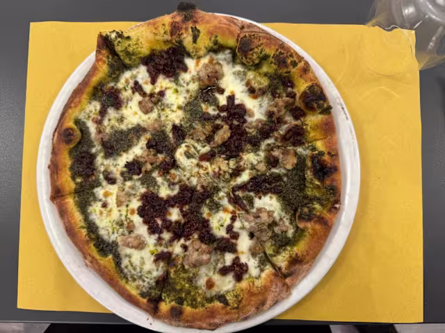 - Fiordilatte, radicchio, salsiccia, emmenthal, grana.