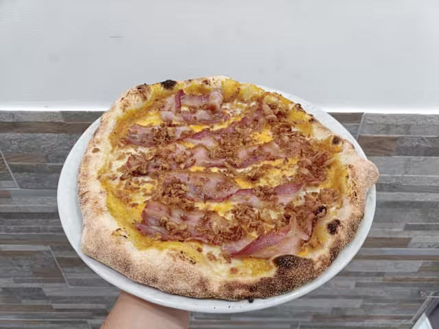 - Pomodoro, fiordilatte, prosciutto cotto, melanzana fritta, uovo, grana.
