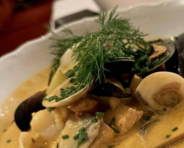 10/10Great food, service and location. We had the moules, fish stew and steak and it was all delicious! I’d happy return again.