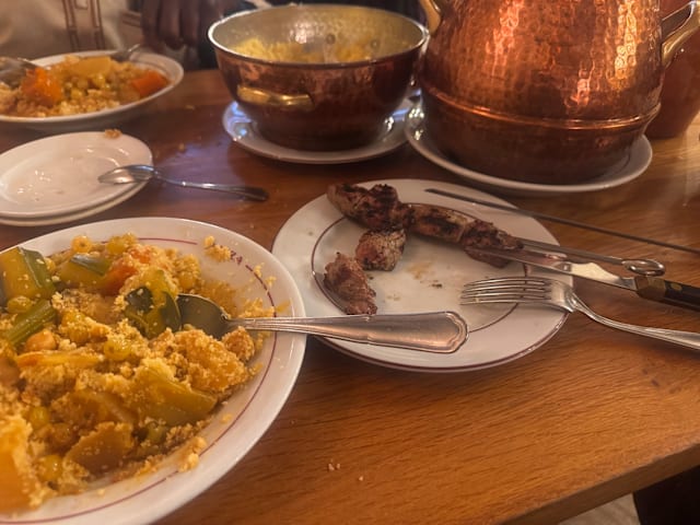 7/10We like the restaurant a lot, but the paltry serving of vegetables in the cous cous "nature" was unacceptable. Only ONE piece of zucchini for two people??? Usually, we have a generous portion and it's too much to eat. I expect that kind of abundance when I go out for cous cous. We'd invited an out of town guest and I didn't want to make a scene, so I didn't ask for more food. Very disappointing.